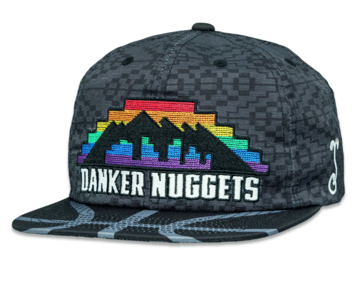 Level up your headwear game with the Danker Nuggets Black Pyramid Snapback Hat.