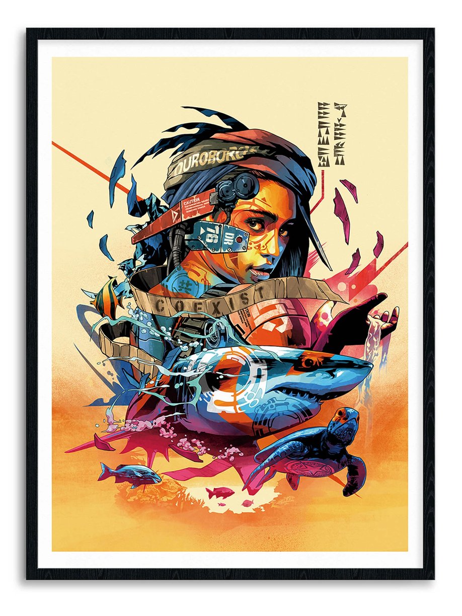 This print does not come framed. Picture of framed Print is to show how it will look once it is framed. This is a true masterpiece, bright bold colors and amazing conceptual art!