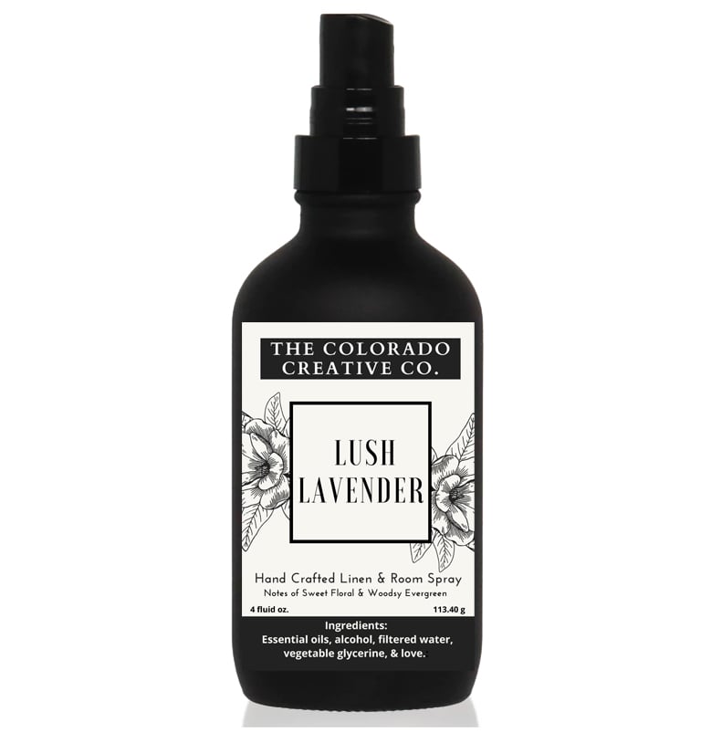 Comes in our large 4 oz. beautiful matte black glass spray bottle. A smell good spray that sanitizes surfaces and linens. Perfect for any room, the cars and closets.