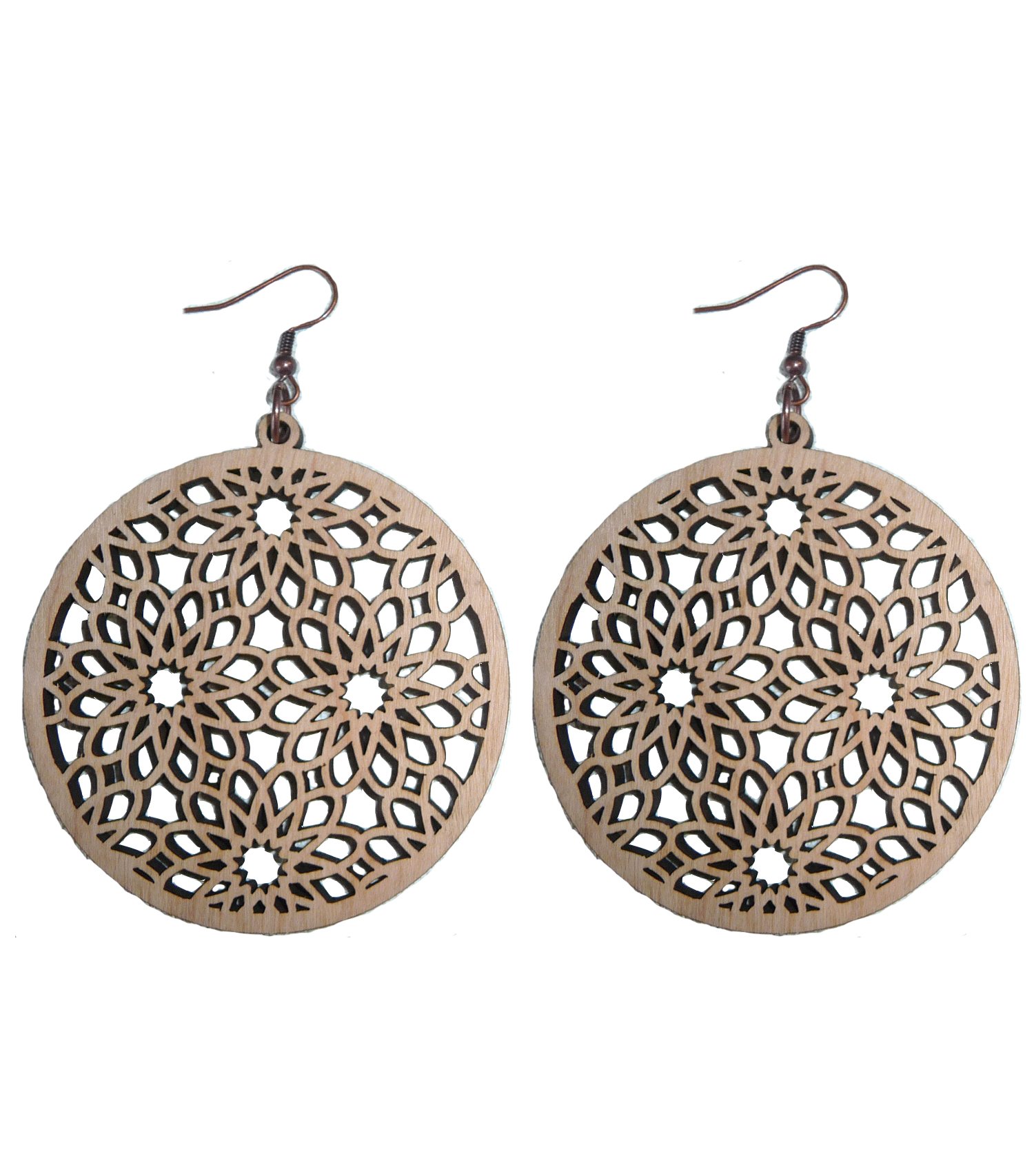 MAHOGANY WOOD LASER CUT EARRINGS WOOD AND COPPER