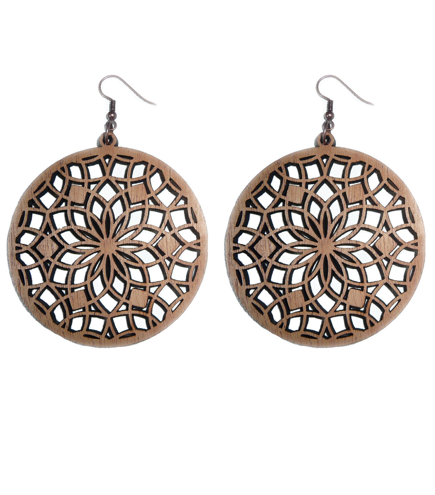 MAHOGANY WOOD LASER CUT EARRINGS WOOD AND COPPER