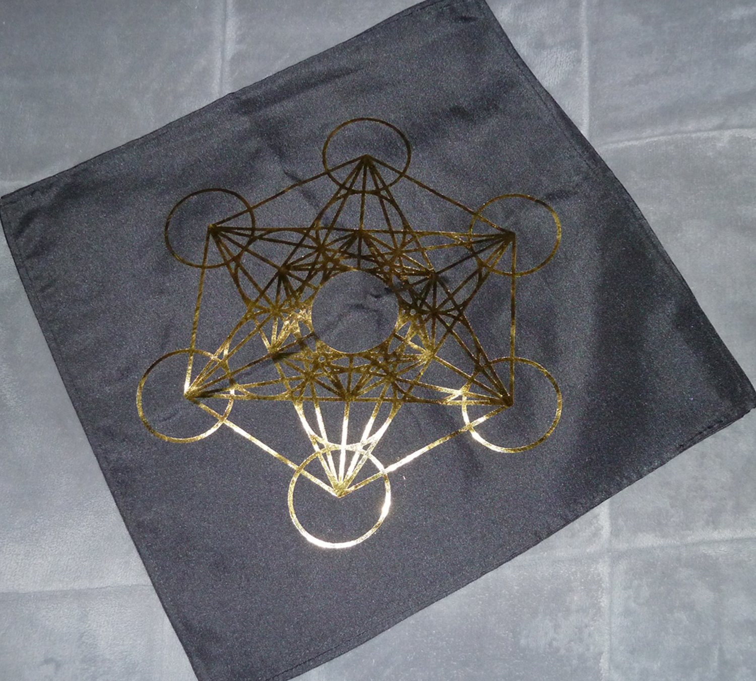 This is a really nice quality 12" x 12" Black linen cloth with the gold foil Metatrons cube. These look amazing at the alter and meditation stations.