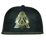 The Secret Society Gold Snapback Hat delivers a clean, standout look with a metal patch on the front and detailed gold embroidery around the crown and under the brim. The combination of black and gold gives it a premium feel without being flashy.